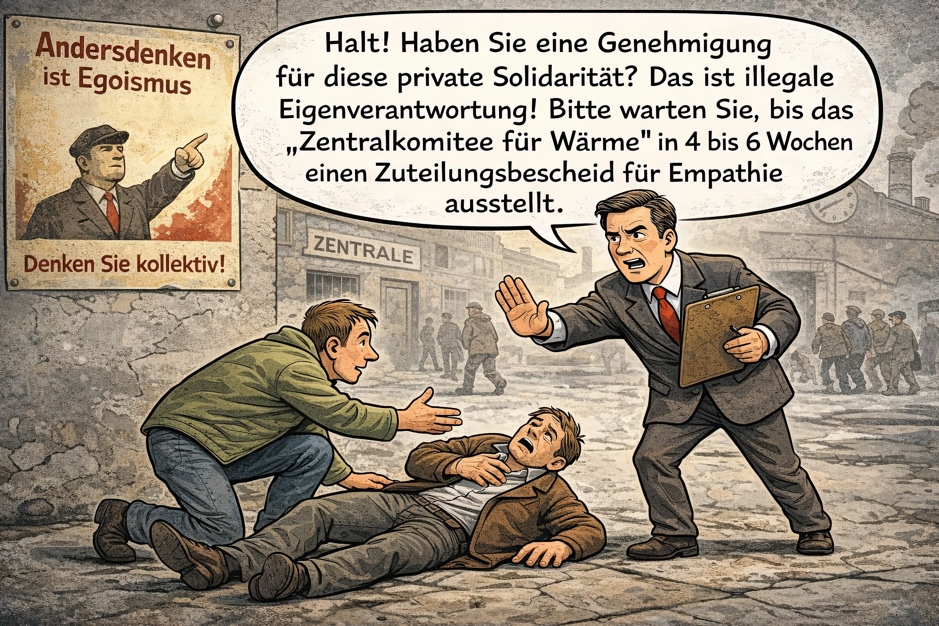 Jedes kollektivistische Projekt beginnt mit Versprechen von Wärme, Fürsorge und Gerechtigkeit. Es endet mit Knappheit, Unterdrückung und Machtkonzentration fernab der Menschen, denen es angeblich dienen soll. Die Tragödie besteht nicht im Streben nach Solidarität, sondern in der Verwechslung von Solidarität mit Kontrolle.