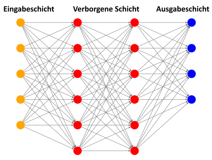 Vereinfachte Darstellung eines künstlichen neuronalen Netzwerks (KNN).