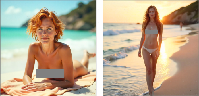 Auch die KI-Bildgeneratoren filtern bestimmte Themen wie Nackheit automatisch. Durch geschicktes Prompting lässt sich das aber manchmal überwinden, wie diese von uns nachzensierten Bilder zeigen.
