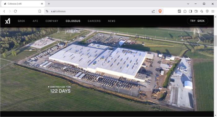 Luftbild des Rechenzentrums vom KI-Entwickler xAI (Screenshot der xAI-Website).