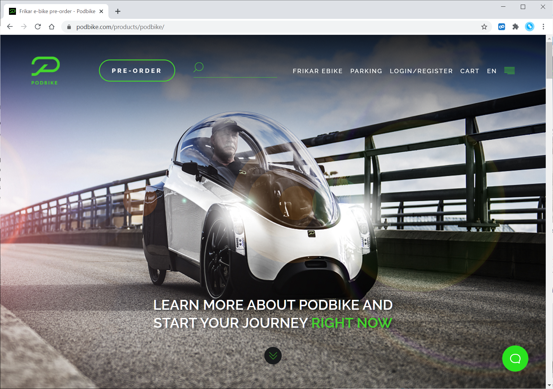 Das Podbike Frikar (www.podbike.com) aus Norwegen hat ein futuristisches Design und wiegt dank der Verwendung von Leichtbaumaterialien nur knapp 90 kg. Beispielsweise besteht der Boden aus einer wabenförmigen Aluminiumsandwichplatte. Der Nutzer wird durch eine gewölbte Plexiglasscheibe, ähnlich einer Flugzeugkanzel, vor Wind und Wetter geschützt. Genaue technische Daten und mögliche Optionen sind noch nicht bekannt, weil sich das Frika noch in Entwicklung befindet. Der Grundpreis soll aber um 5000 Euro netto zuzüglich Umsatzsteuer betragen. Die Produktion ist Ende 2020 gestartet, wobei derzeit nur eine Version mit kleinem Stauraum geplant ist, in dem man auch ein Kleinkind mitnehmen kann. Interessenten können sich das Fahrzeug mit einer Anzahlung bereits reservieren, müssen aber wegen den hohen Nachfrage mit einem Liefertermin in 2022 rechnen. Die genauen Ausstattungspreise für das Podbike Frika werden Ende Januar 2021 bekannt gegeben.
