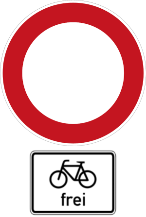 Auch das gibt es: Das Zeichen 260 gestattet bereits die Durchfahrt für Radfahrer. Das Zusatzschild ist deshalb zumindest für Radler überflüssig.