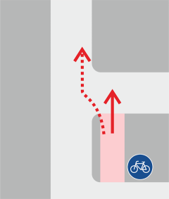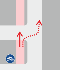 In vielen größeren Städten werden die Radwege über die Kreuzung oder über Einmündungen geführt, was das Abbiegen erleichtert.