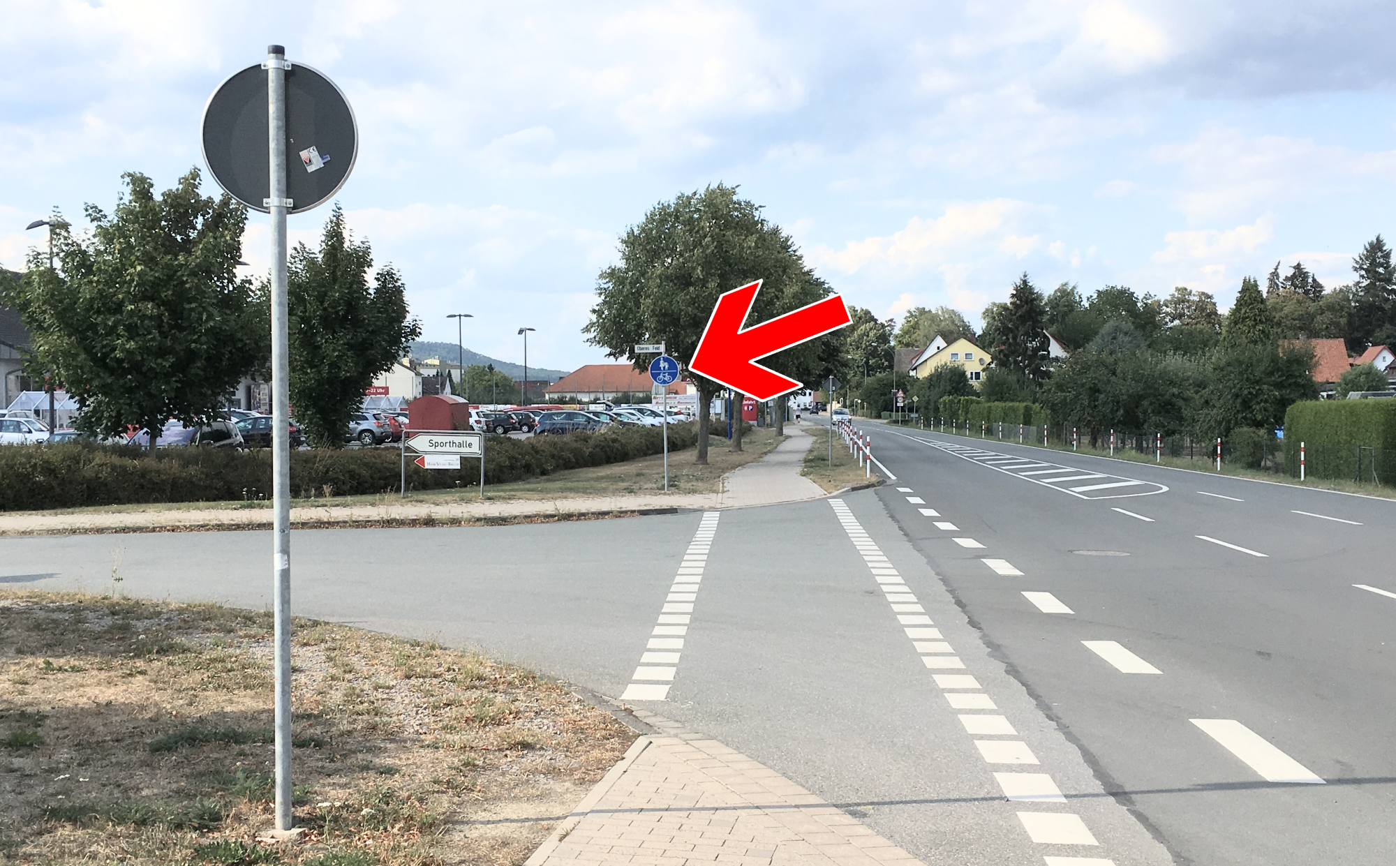 Hier geht der Radweg zwar nach der Kreuzung weiter, aber das runde blaue Fahrradschild fehlt.