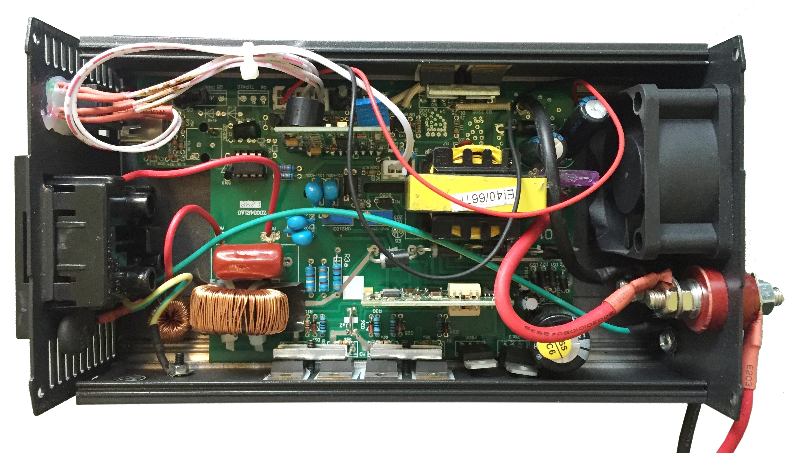 Geöffneter Sinusspannung-Wechselrichter für 12 V auf 230 V. Foto: Kaspars Dambis8