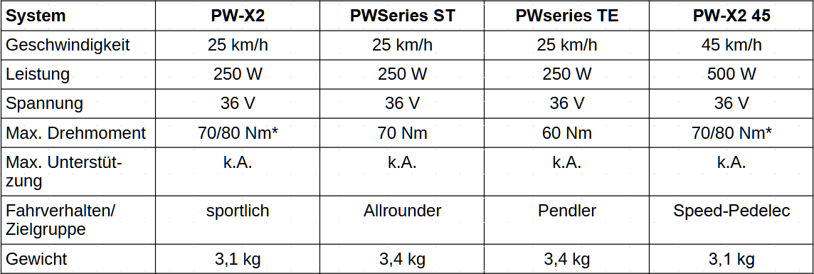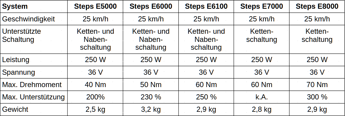Bitte beachten Sie, dass die Antriebslieferanten inzwischen zu einer fast jährlichen Aktualisierung ihrer Motoren übergegangen sind. Die Infos in diesem Kapitel sind auf dem Stand von Ende 2020 und dürften daher teilweise bereits wieder überholt sein.
