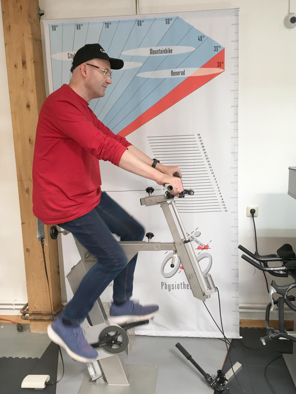 Normalerweise erfolgt die Messung direkt auf dem Kunden-Pedelec. In diesem speziellen Fall war das allerdings technisch nicht möglich (wegen des Hinterradantriebs des vom Autor genutzten Pedelecs). Deshalb wurden die genauen Abmessungen des Pedelecs auf einen »Fahrrad-Dummy« übernommen.