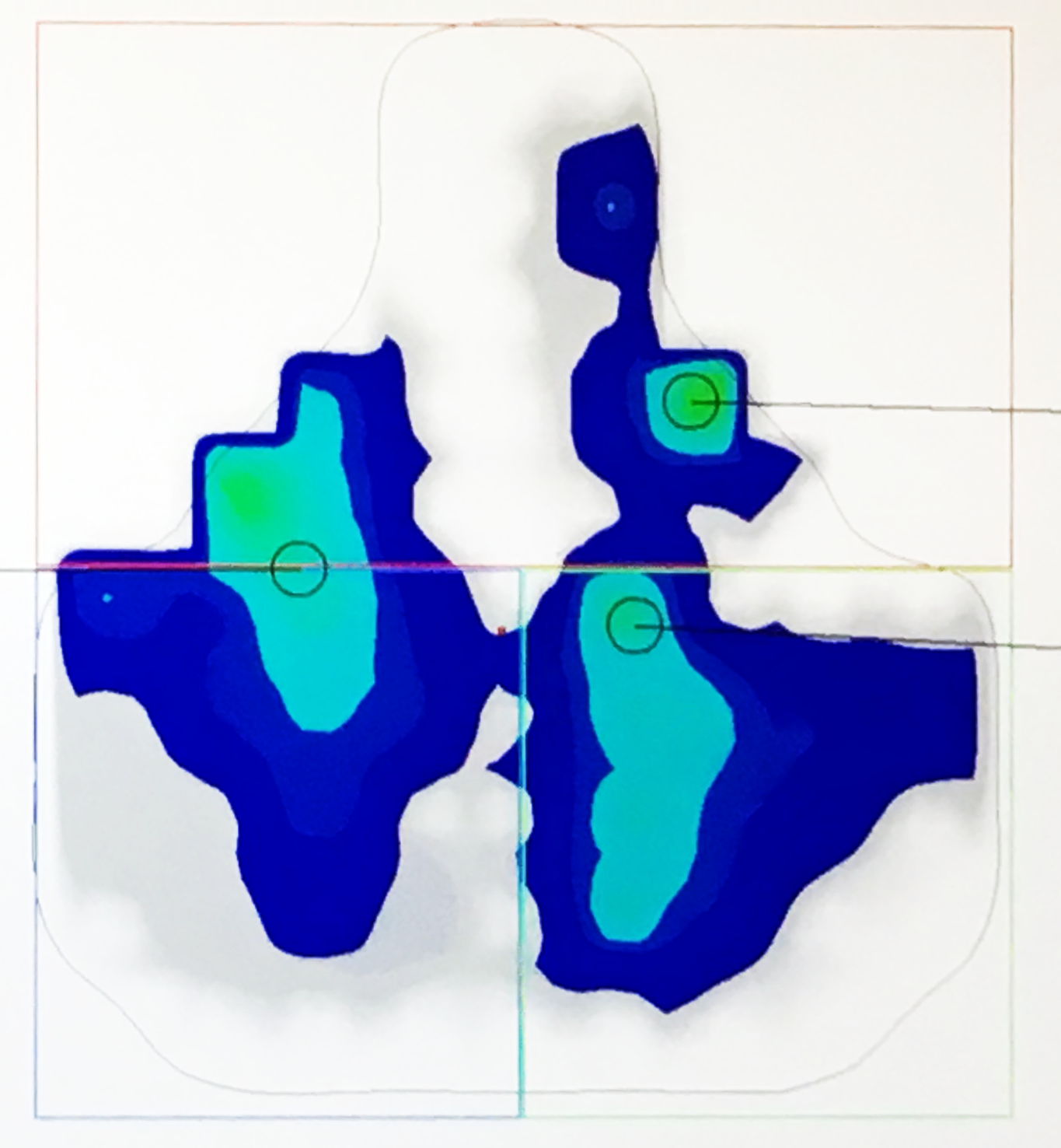 Die Druckstellen sind normalerweise gleich groß. Sollte dies nicht der Fall sein, könnte eine Beckenfehlstellung vorliegen, das heißt, selbst ein optimal gewählter Sattel wird mit großer Wahrscheinlichkeit Schmerzen verursachen. Führen Sie in diesem Fall sicherheitshalber die Messung erneut durch und lassen Sie sich gegebenenfalls von Ihrem Arzt beraten.