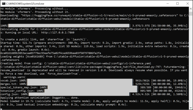 Wichtig: Im Hintergrund läuft SD als sogenannter Server in der Eingabeaufforderung. Dieses Fenster dürfen Sie nicht schließen, solange Sie SD für die Bildgenerierung nutzen.