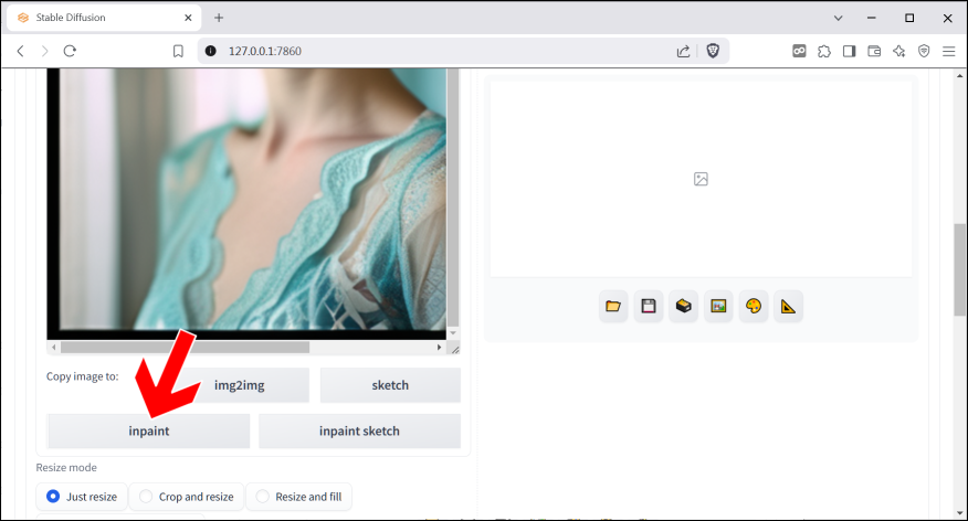 aktivieren Sie das img2img-Register in der Benutzeroberfläche, oder