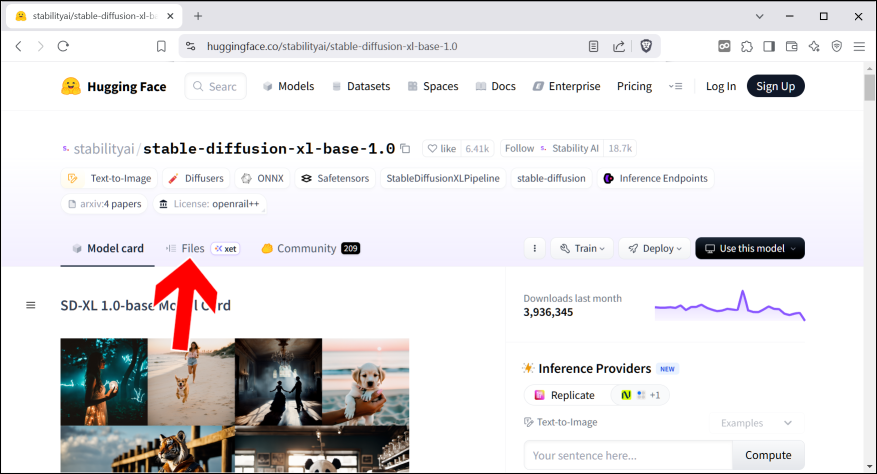 Rufen Sie https://huggingface.co/stabilityai/stable-diffusion-xl-base-1.0 auf.