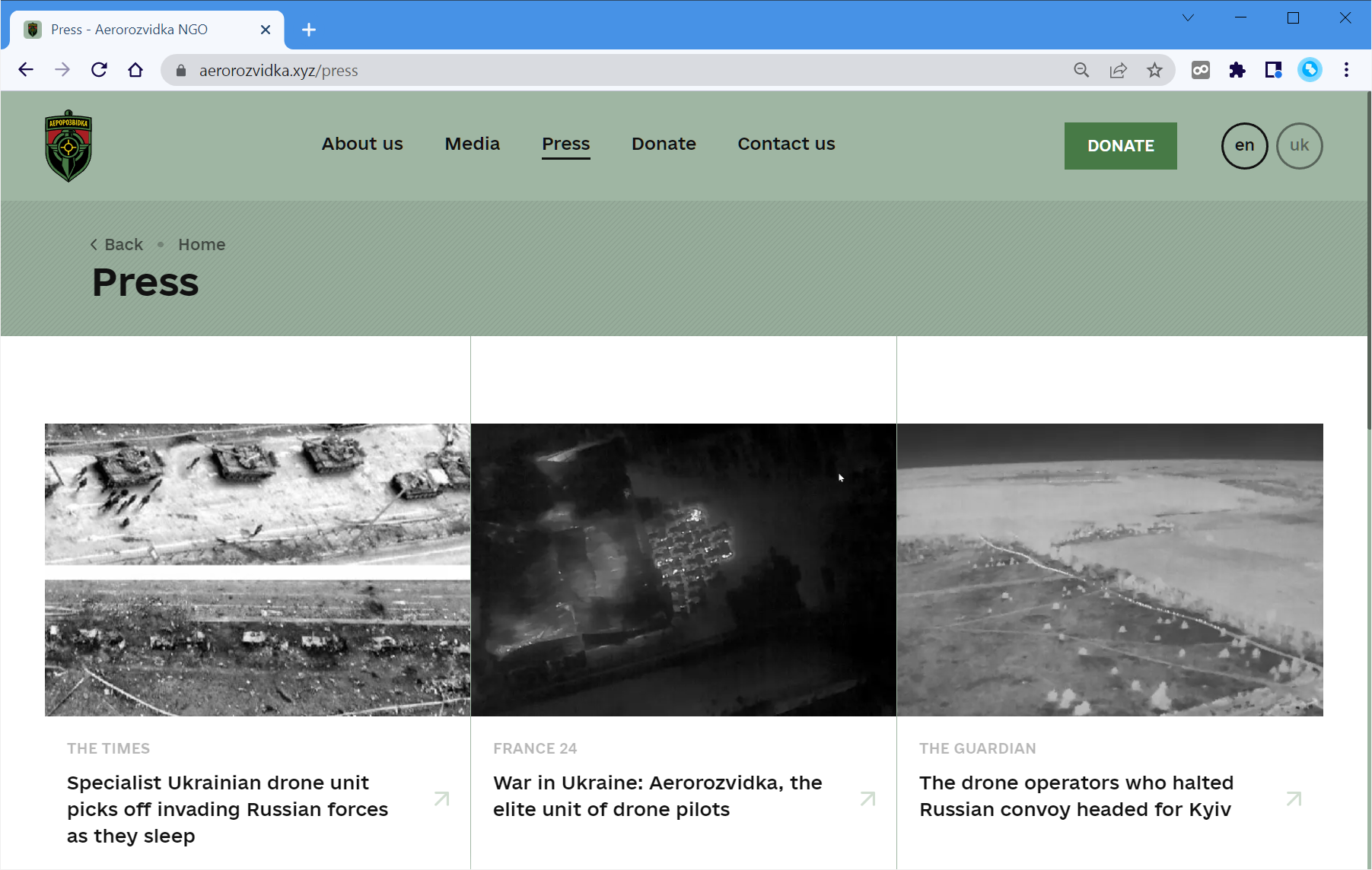 Die Website der Drohnen-Einheit Aerorozvidka25.