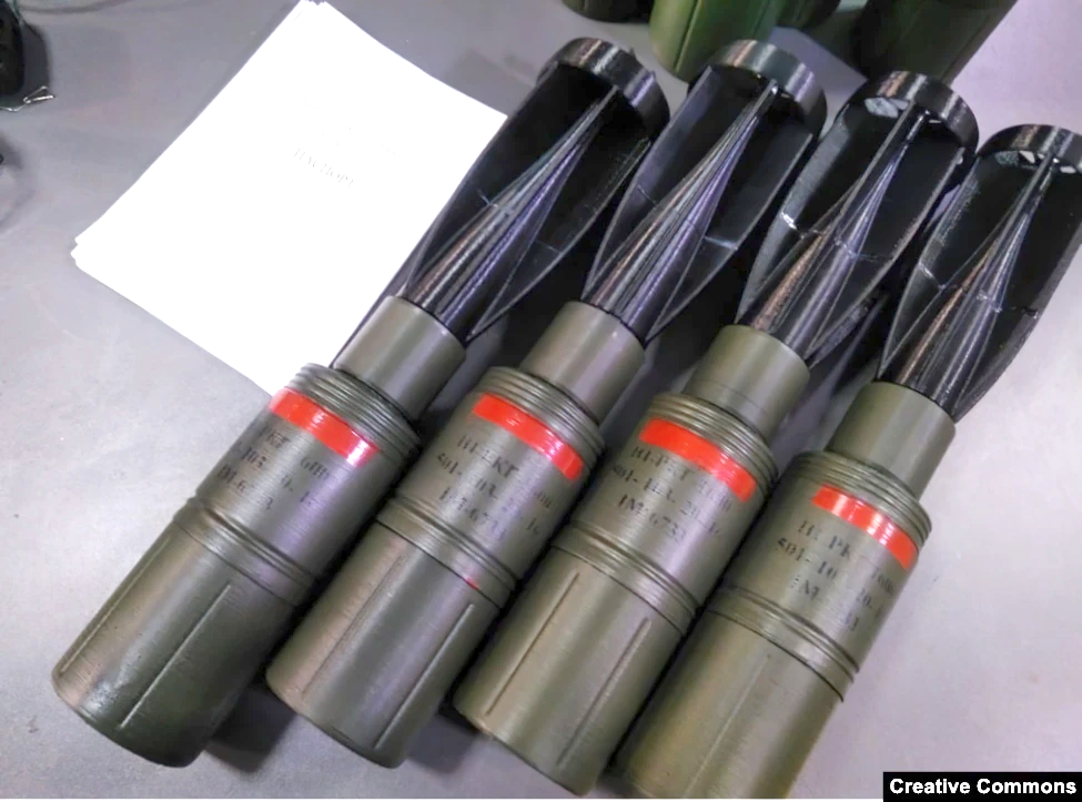 Als »Bomben« kommen unter anderem alte sowjetische RKG-3-Granaten zum Einsatz. Diese musste der Soldat früher von Hand aus wenigen Metern Entfernung auf die gegnerischen Panzer werfen, was extrem gefährlich war (heute finden stattdessen Panzerabwehrraketen Verwendung). Für den Drohnenabwurf mit 3D-gedruckten Finnen ausgestattet, werden die alten Granaten dagegen zu einer modernen und tödlichen Distanzwaffe.