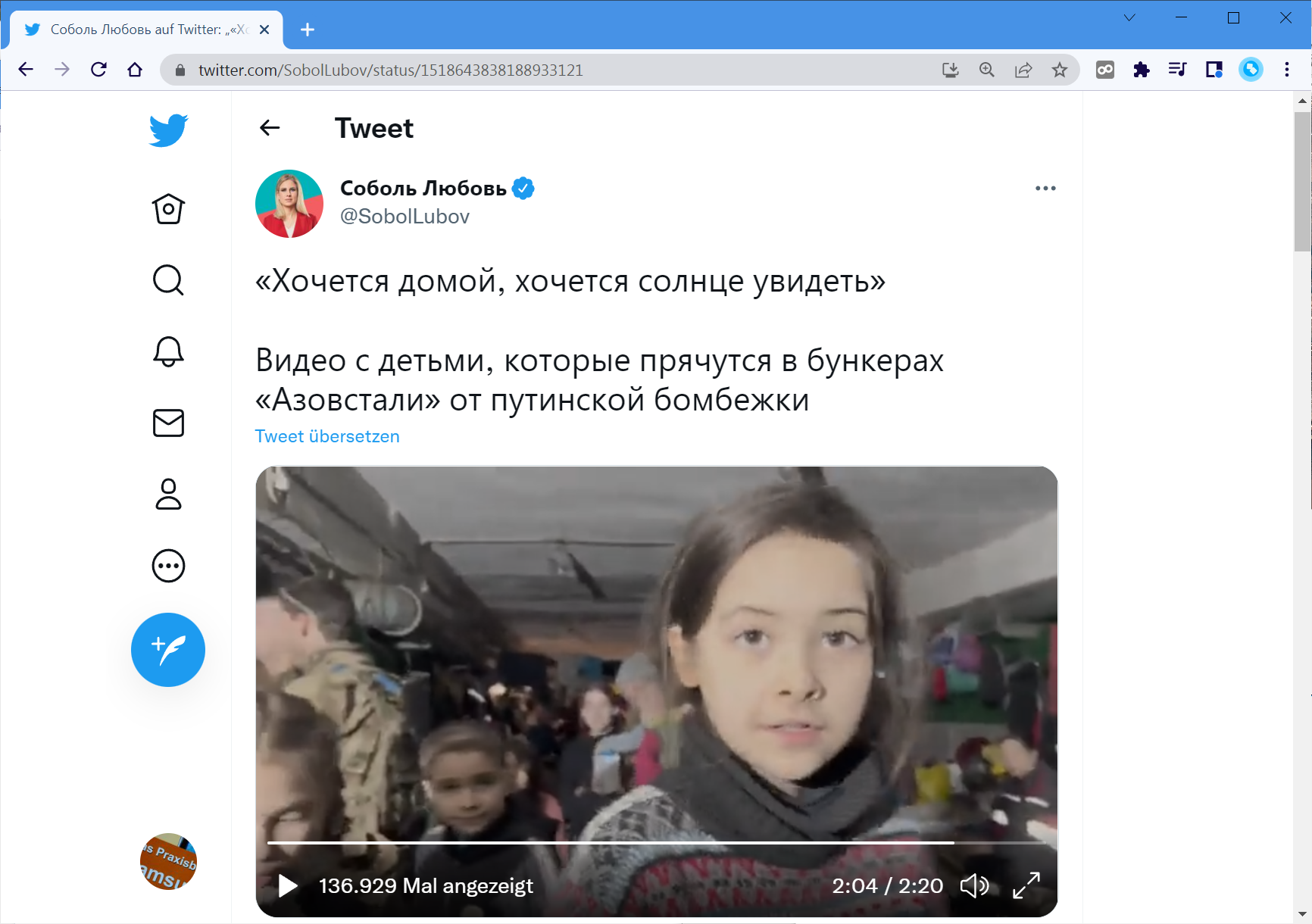 Zu diesem Video aus dem Stahlwerk lautet die Beschreibung "Ich will nach Hause, ich will die Sonne sehen." Video von Kindern, die sich in Asowstal-Bunkern vor Putins Bombardierung verstecken«10