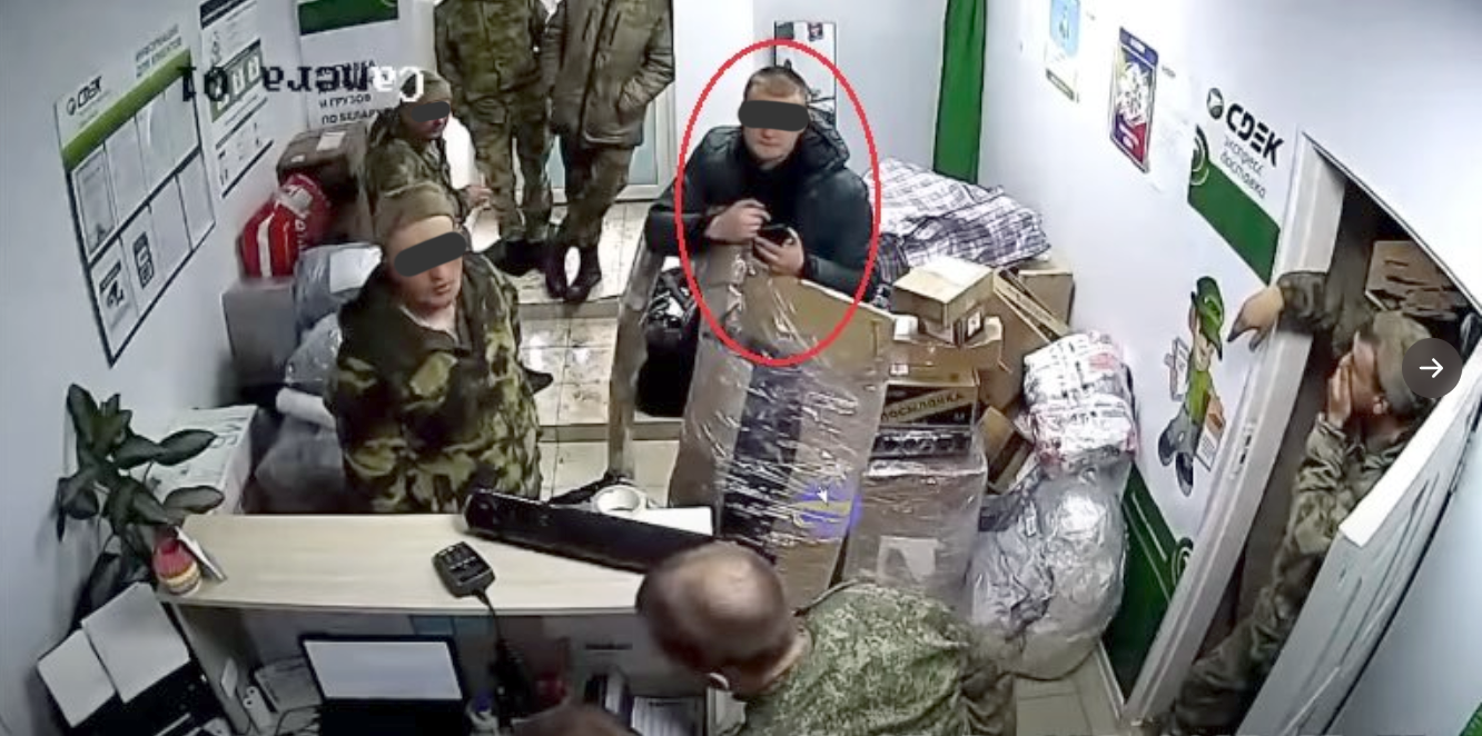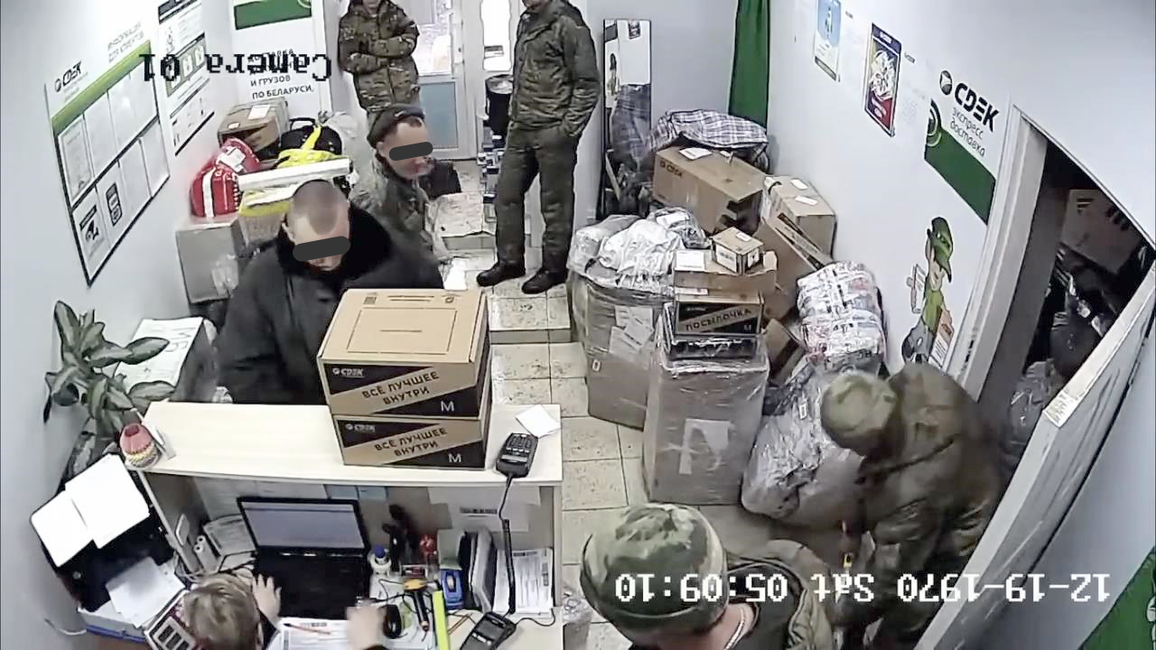 Am Samstag, den 2. April, schickten russische Soldaten in der Kuibyschewa-Straße 32 in Mazyr (Belarus) in der Ukraine gestohlene Gegenstände durch das Büro des russischen Expressdienstes CDEK.